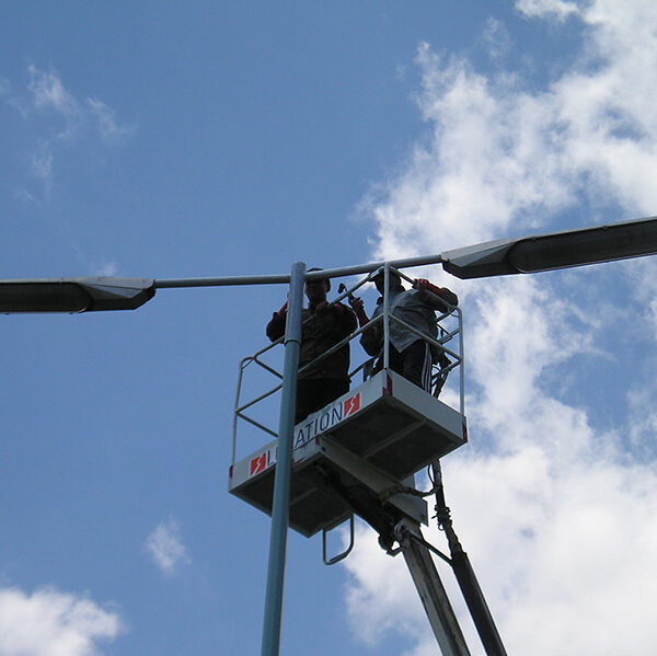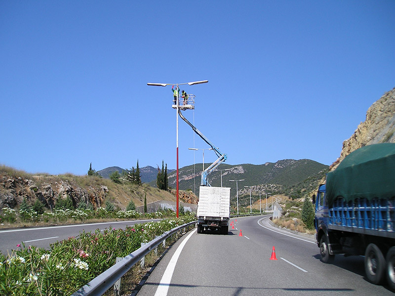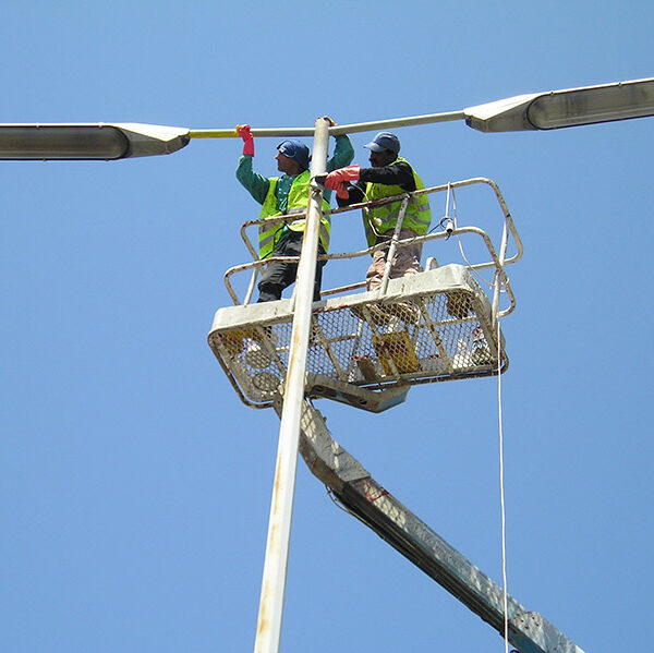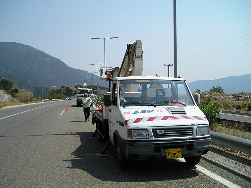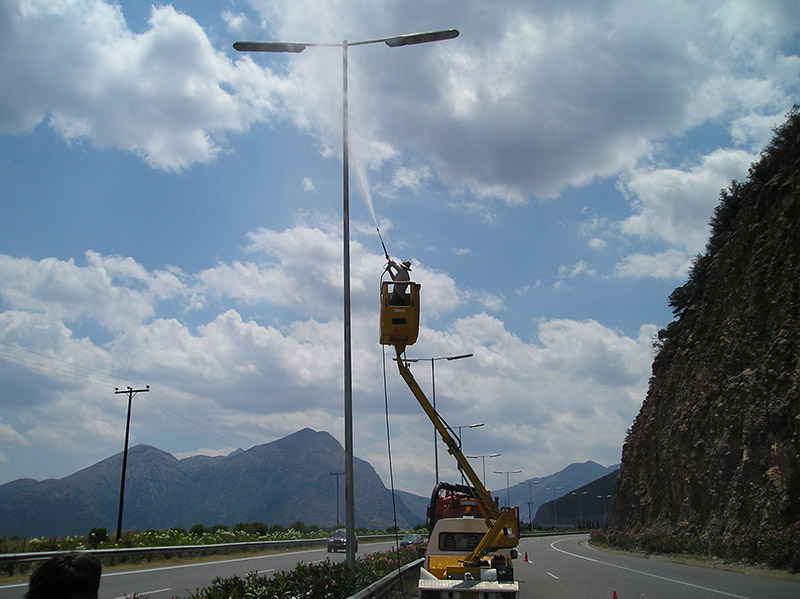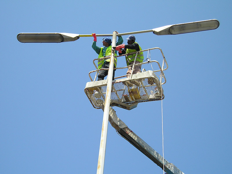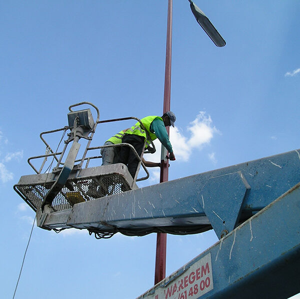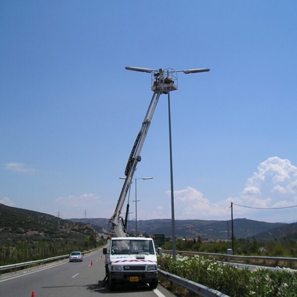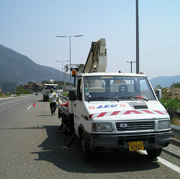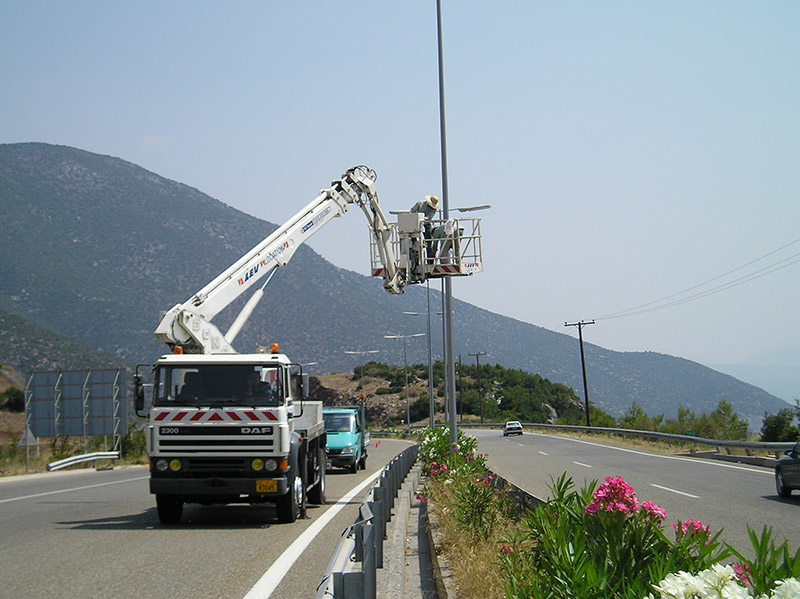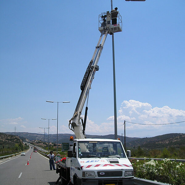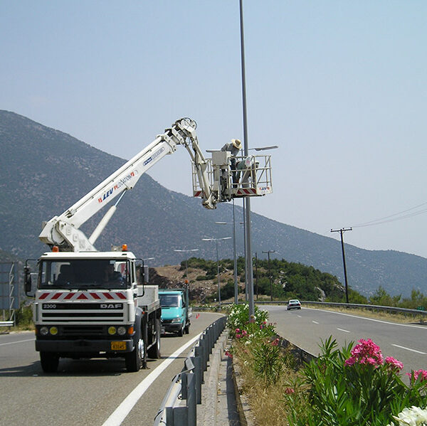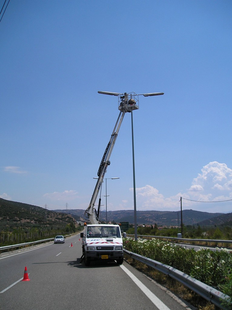 Διαθέτουμε τον απαραίτητο τεχνικό εξοπλισμό και εξειδικευμένο προσωπικό για την επίτευξη των στόχων κάθε έργου οδοφωτισμού. Μια από τις βασικές μας δραστηριότητες είναι η αλλαγή λαμπτήρων σε ύψος μέχρι και 35 μέτρα, κάτι που απαιτεί ειδικό μηχανολογικό εξοπλισμό και εμπειρία υψηλών προτύπων ασφαλείας.