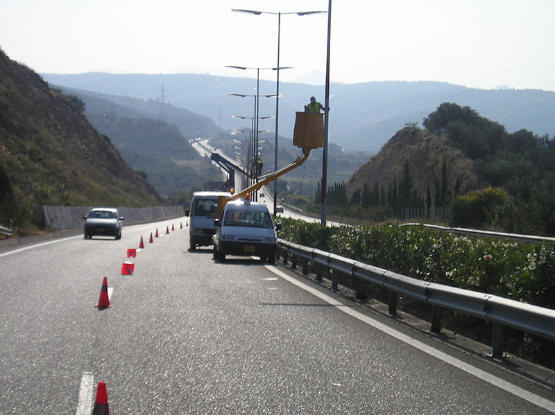 Οι υπηρεσίες μας καλύπτουν ολοκληρωμένα την επισκευή και συντήρηση των πυλώνων φωτισμού της Εθνικής Οδού, τον εμπεριστατωμένο καθαρισμό τους, καθώς και την έγκαιρη αντικατάστασή τους όπου αυτό κρίνεται απαραίτητο. Μέσω προληπτικών προγραμμάτων συντήρησης, εξασφαλίζουμε τη διαρκή λειτουργία και την αξιοπιστία του δικτύου οδοφωτισμού, αποτρέποντας δυνητικές βλάβες και διατηρώντας το δημόσιο αγαθό σε άριστη κατάσταση.